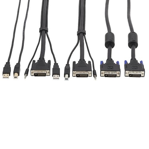 Recommended for the Tripp Lite B002-DV2AC4 NIAP KVM, the DVI cables support video resolutions up to 2560 x 1600 (including 1080p) at 60 Hz. The USB cables also support USB 2.0 data transfer speeds up to 480 Mbps. By combining several different cables into one convenient kit, you cut down on unnecessary clutter and costs.