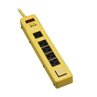 This power strip safely distributes power to connected equipment in harsh environments. It provides a convenient source for multiple outlets wherever they're needed. Six outlets distribute AC power to a wide range of power tools, pumps, air compressors and more. Convenient transformer outlets accommodate multiple transformers without blocking other outlets. A six' (1.8m) grounded cord with integrated cord clip reaches distant outlets. A lighted on/off switch with integrated circuit breaker provides power control over connected equipment. Breaker protects against dangerous system overload. Four safety covers shield unused outlets from debris and accidental contact. A rugged metal case stands up to the harshest environments. Integrated keyhole slots on bottom panel provide convenient wall/desk mounting. Its bright yellow color alerts you and others that power cords and tools are in use.